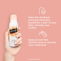 - يعمل مزيج مزيل الروائح مع مركب آذريون "MultiActif" للمساعدة في منع الرائحة الكريهة، إلى جانب مستخلص الحرير المرطب، لتوفير طبقة واقية حول المناطق الحميمة التي يتم رشها.