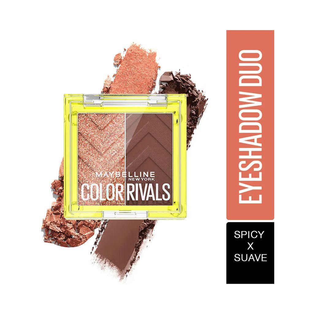 اجعل عينيك مميزتين مع ظلال العيون الثنائية من مايبيلين نيويورك كلر رايفالز لونج وير - سبايسي اكس سواف (3 جم). تتميز ظلال العيون هذه بظلال لامعة وغير لامعة لمساعدتك على الحصول على مظهر مكياج عيون مذهل. كما تحتوي ظلال العيون من مايبيلين نيويورك على ظلال مصبوغة بدرجة عالية توفر ألوانًا جريئة تدوم طوال اليوم دون أن تتلاشى. بالإضافة إلى ذلك، فإن ظلال العيون المقاومة للماء مقاومة للعرق وتضمن بقاء مكياجك حيويًا طوال اليوم.