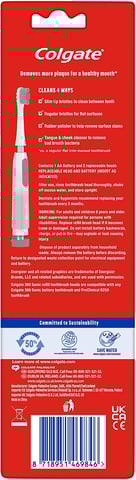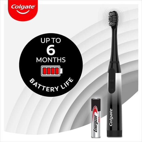 46154Product description Take care of your bright smile with the Colgate 360 Sonic Charcoal Battery Powered Toothbrush. This battery toothbrush, with charcoal infused bristles, has been designed to remove more plaque than a regular flat trim manual toothbrush for a healthy mouth. This brilliant battery operated toothbrush cleans in 4 ways: 1. It’s slim tip bristles are designed to clean between teeth. 2. The regular bristles on the battery powered toothbrush clean flat surfaces. 3. The rubber polisher helps to remove surface stains 4. The tongue and cheek cleaner remove bad breath bacteria for extra confidence The battery operated toothbrush comes with a replaceable head and an AA battery, so it’s ready to use as soon as you get it, and it’s easy to replace the head with Colgate refill toothbrush heads that are compatible with any Colgate 360 Sonic battery toothbrush and ProClinical R250 toothbrush. Give your smile a confidence boost when you use this battery toothbrush from Colgate.