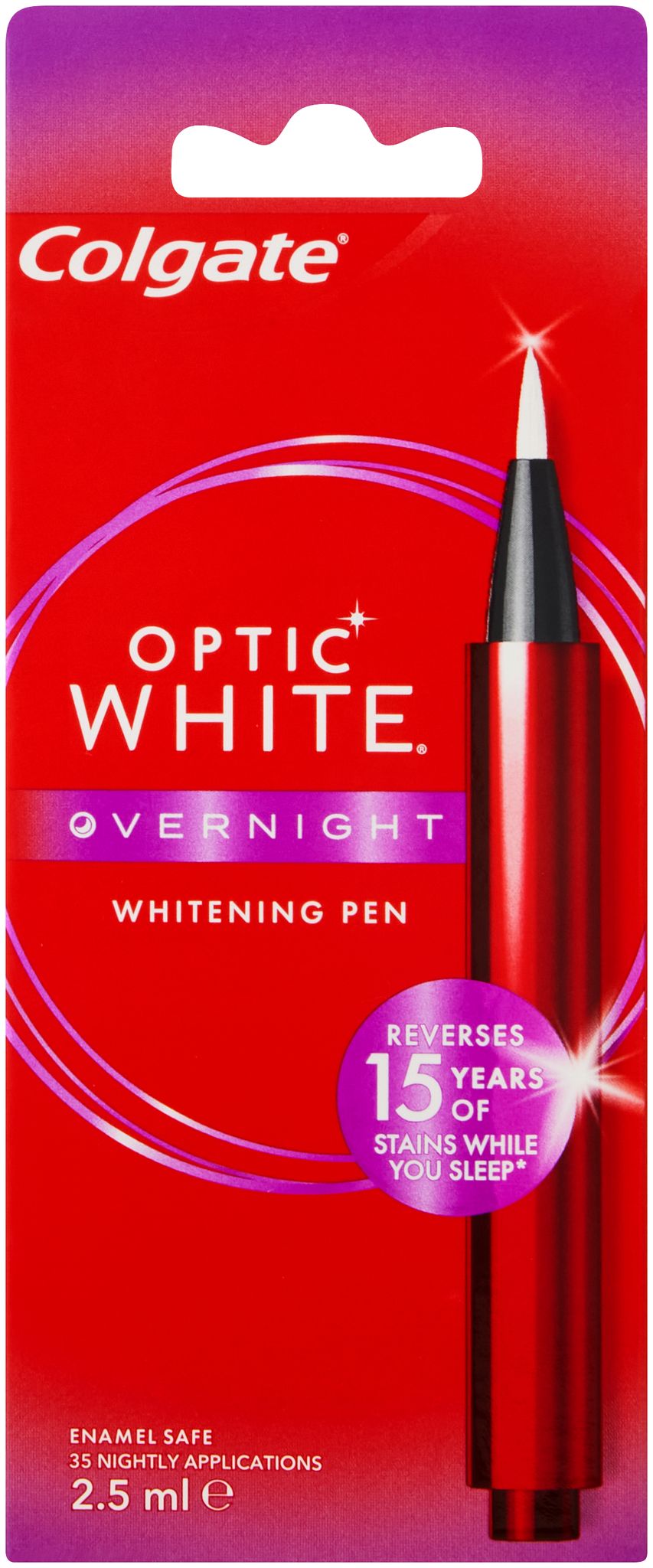 65645aea3246d524659ed3abColgate Optic White Overnight Penhttps://www.kunooz.com/s/5e5b8eb5e1a30016118f588f/65645bba6802b824c3d7563c/49266.jpgTransform your smile with the new Colgate Optic White Overnight Whitening Pen. Its patented formula reverses 15 years of stains* while you sleep, using an enamel-safe, hydrogen peroxide-based gel that works through a simple 4-step process. This compact and easy-to-use pen is formulated with advanced whitening ingredients that gently and effectively lift away stains, revealing a brighter and more radiant smile. By applying the gel directly to your teeth before bedtime, you can experience noticeable whitening results within just 3 days. The convenient design allows for precise application, targeting specific areas that may need extra attention. This pen is a convenient and efficient way to achieve teeth that are visibly whiter and more confident-looking, all without interrupting your daily routine49266