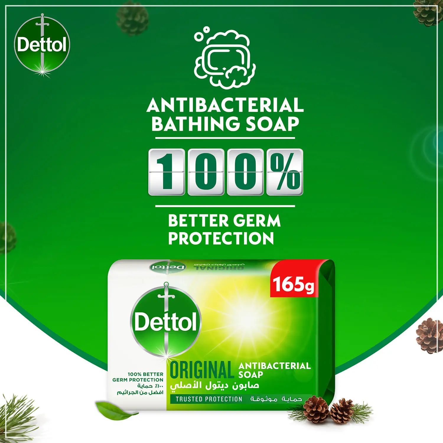 64662501488c216702d6b454Dettol Soap Original 165 gmhttps://www.kunooz.com/s/5e5b8eb5e1a30016118f588f/6469b3c24a6331fdf1ad863b/32312.jpgFeatures: 100% PROTECTION: Dettol Original Bar Soap gives 100% better protection from illness causing germs TRUSTED PROTECTION: Complete antibacterial soap with trusted protection AMAZING FRAGRANCE: Pine fragrance to leave your skin feeling healthy & fresh NO TCC & TRICLOSAN: No TCC & Triclosan, giving another reason for taking a bath whenever needed DERMATOLOGICALLY TESTED: Dettol soap is dermatologically tested ALSO TRY: Dettol soothe, cool, fresh, nourish, sensitive, active and skincare soap bar variants COMMONLY SEARCHED TOPICS: soap, dettol soap, soaps, liquid soap, bar soap, hand soap, soap bar, dettol soaps, antibacterial soap, a hand soap, a soap bar, dettol bar soap, solid soap bars, the soap bar, dettol soap bars, soap dettol, bathing soap bar Product Description: Going outside has some unwelcomed effects such as getting exhausted, dirty, and tired. Dettol Original soap bar makes sure you always stay healthy by giving you 100% better germ protection. The soap bar combines Dettol’s trusted germ protection with pine fragrance to leave your skin feeling healthy & soft. This antibacterial soap is dermatologically tested and is free of TCC & Triclosan to keep your family healthy & hygienic. Also, explore Dettol’s products range like – Liquid Handwash refill, Liquid Handwash soaps, Antibacterial & Skincare Bar soaps, Multipurpose Home cleaners, Floor cleaners, Disinfectant spray Sanitizer, Hand sanitizer, Shower gel, Body wash, Bathroom cleaners, kitchen cleaners, Cleaning triggers, Surface & personal disinfectant wipes and Air fresheners. Now get a fresh start everyday with Dettol Soap.32312