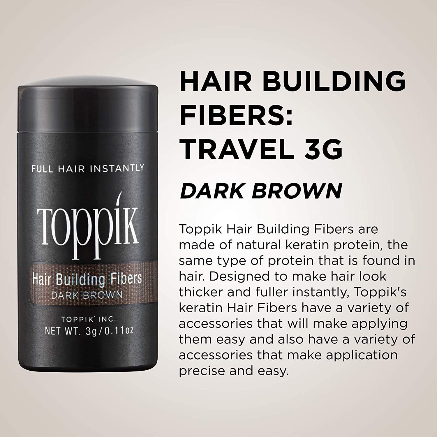 Natural Keratin Hair Fiber, The Instant Solution For Light And Bald Hair, And A Quick And Effective Solution For A Stylish And Attractive Look. And For Men And Women And For All Ages And Without Any Effort Or Time. Â Topek Spreads Its Very Small Fibers On The Scalp And Fills All Areas Of Hair It Can Not Be Distinguished After It Is Placed On The Original Hair Even Close.