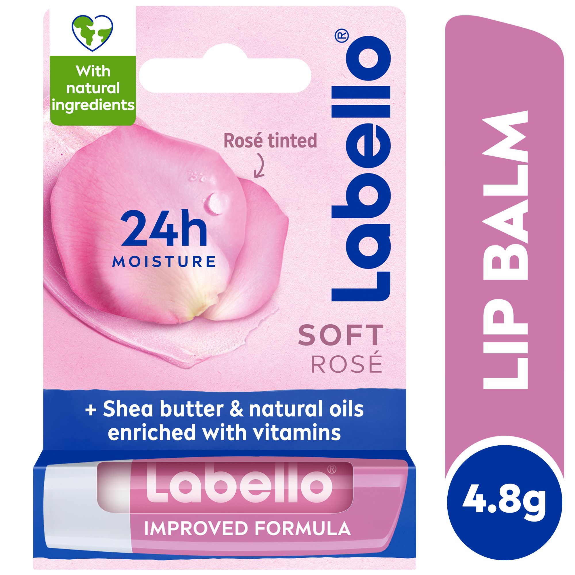 Delicately cared for lips with the Labello Velvet Rose lip balm. Soothing ingredients such as rose and jojoba oil as well as shea butter give your lips intense moisture and protect them from dehydration in the long term. A subtle rose scent and a light pink finish envelop your lips. For natural-looking, beautiful lips.