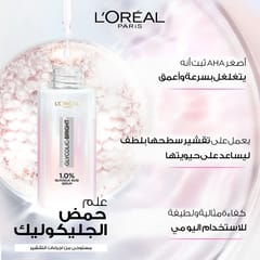 Product Description: L’Oréal Skincare Laboratories developed INSTANT GLOWING SERUM formulated with 1.0% Glycolic Acid. Clinically proven to brighten skin and visibly reduce dark spots. With the smallest molecular weight amongst all Alpha Hydroxy Acids, it is absorbed deeply to help with skin rejuvenation. (1) Visibly reduces dark spots (2) Evens skin tone (3) Improves radiance VISIBLE RESULTS* Immediately: Skin is smoother and visibly glowing. In 2 weeks: Dark spots are visibly reduced. Skin is more even and looks brighter. USAGE: Apply a few drops of the serum before your moisturizer. Layers well under makeup. Avoid eye contours. How to use: Smooth over face and neck every morning. Layers well under makeup. Ingredients: 87 08 - INGREDIENTS: AQUA / WATER GLYCERIN ALCOHOL D I P R O P Y L E N E G LYCO L B U T Y L E N E G LYCO L PEG/PPG/POLYBUTYLENE GLYCOL-8/5/3 GLYCERIN NIACINAMIDE HYDROXYETHYLPIPERAZINE ETHANE SULFONIC ACID BIS-PEG-18 METHYL ETHER DIMETHYL SILANE GLYCOLIC ACID 3-O-ETHYL ASCORBIC ACID ISONONYL ISONONANOATE LINALOOL GERANIOL SORBITAN ISOSTEARATE EUGENOL PARFUM / FRAGRANCE SALICYLIC ACID SODIUM HYDROXIDE SODIUM CITRATE SODIUM HYALURONATE PHENOXYETHANOL PHENYLETHYL RESORCINOL ADENOSINE AMMONIUM POLYACRYLOYLDIMETHYL TAURATE TOCOPHERYL ACETATE DISODIUM EDTA LIMONENE TOCOPHEROL HYDROXYETHYL ACRYLATE/SODIUM ACRYLOYLDIMETHYL TAURATE COPOLYMER HYDROGENATED LECITHIN CITRIC ACID CITRONELLOL XANTHAN GUM ACETYL TRIFLUOROMETHYLPHENYL VALYLGLYCINE OXOTHIAZOLIDINECARBOXYLIC ACID POLYSORBATE 60 HEXYL CINNAMAL BENZYL ALCOHOL (F.I.L C269041/1).