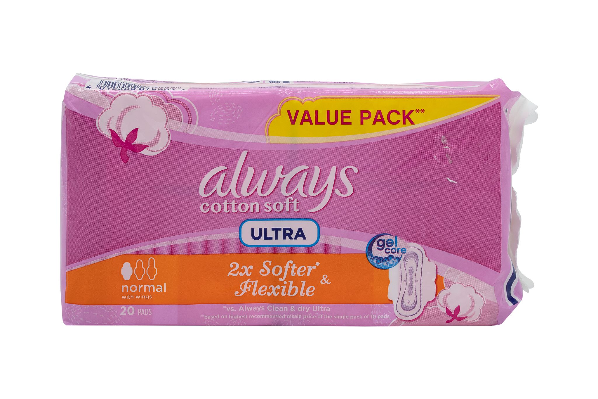 Feel Super Soft With Always Ultra Thin Cotton Soft Sanitary Pads. These Pads Are Rated Softer On Skin Than Other Cottony Brands To Go Against Irritation And Harm, And A Thin Super Absorbent Gel Core Technology That Will Make You Forget About The Pad.