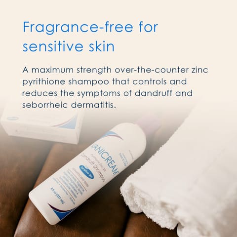 42783Product description Maximum OTC strength, Vanicream Medicated Dandruff Shampoo helps relieve itching, irritation, redness, flaking and scaling associated with dandruff and seborrheic dermatitis. Mild and gentle for those who need, or want, a dandruff shampoo that is free of common chemical irritants. pH balanced. For all hair types. From the makers of Vanicream Sensitive Skin Care. Formerly Free & Clear AntiDandruff Shampoo; same great product with a new name.